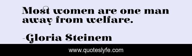 This page presents the quote "Most women are one man away from welfare.". Author of this quote is Gloria Steinem. This quote is about man, freedom, welfare, power, women,.