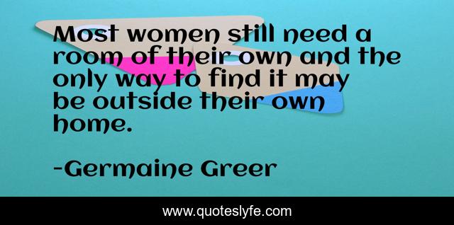 This page presents the quote "Most women still need a room of their own and the only way to find it may be outside their own home.". Author of this quote is Germaine Greer. .