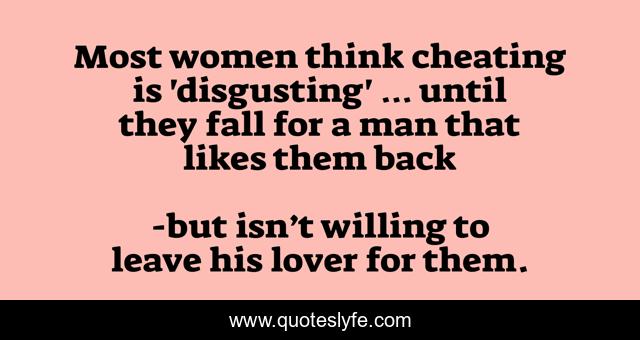 This page presents the quote "Most women think cheating is 'disgusting' … until they fall for a man that likes them back". Author of this quote is but isn’t willing to leave his lover for them.. .