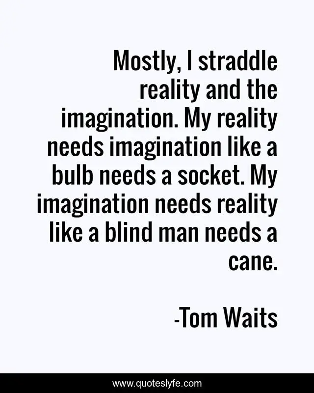 "Tom Waits Quotes." Quoteslyfe.com, 2025. Sat. 06 Dec. 2025. <https://www.quoteslyfe.com/quote/Mostly-I-straddle-reality-and-the-imagination-317456>.