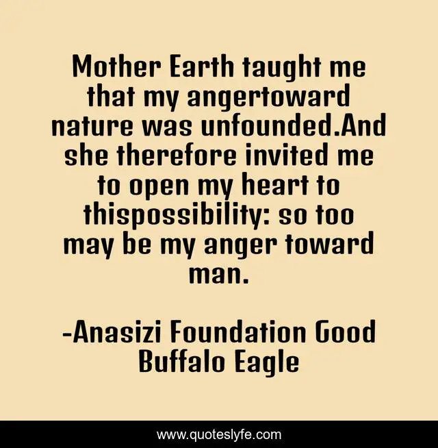 "Anasizi Foundation Good Buffalo Eagle Quotes." Quoteslyfe.com, 2025. Fri. 05 Dec. 2025. <https://www.quoteslyfe.com/quote/Mother-Earth-taught-me-that-my-angertoward-161653>.