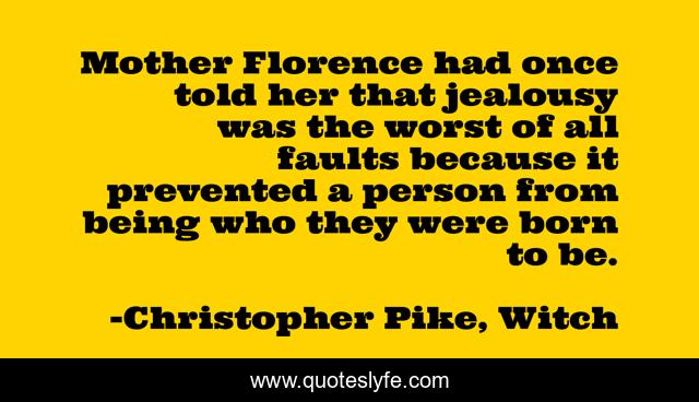 This page presents the quote "Mother Florence had once told her that jealousy was the worst of all faults because it prevented a person from being who they were born to be.". Author of this quote is Christopher Pike, Witch. This quote is about spirituality, jealousy,.