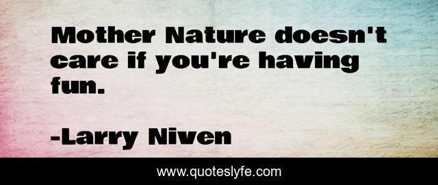 This page presents the quote "Mother Nature doesn't care if you're having fun.". Author of this quote is Larry Niven. This quote is about fun, science, nature,.