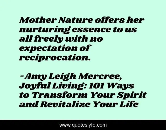 "Amy Leigh Mercree, Joyful Living: 101 Ways to Transform Your Spirit and Revitalize Your Life Quotes." Quoteslyfe.com, 2025. Sat. 06 Dec. 2025. <https://www.quoteslyfe.com/quote/Mother-Nature-offers-her-nurturing-essence-to-14983>.