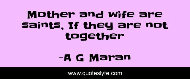 This page presents the quote "Mother and wife are saints, If they are not together". Author of this quote is A G Maran. This quote is about inlaws, mother, humor, wife,.