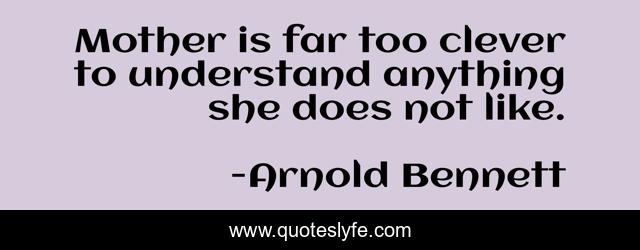 This page presents the quote "Mother is far too clever to understand anything she does not like.". Author of this quote is Arnold Bennett. This quote is about clever, she, mother,.