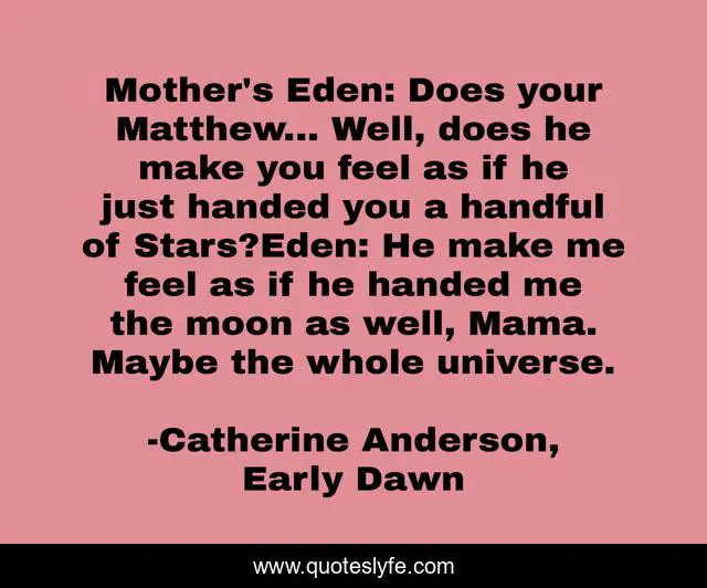 "Catherine Anderson, Early Dawn Quotes." Quoteslyfe.com, 2025. Sat. 06 Dec. 2025. <https://www.quoteslyfe.com/quote/Mother-s-Eden-Does-your-Matthew-Well-162146>.