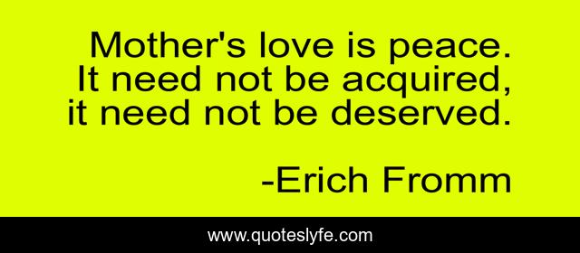 This page presents the quote "Mother's love is peace. It need not be acquired, it need not be deserved.". Author of this quote is Erich Fromm. This quote is about peace, mother, love is,.