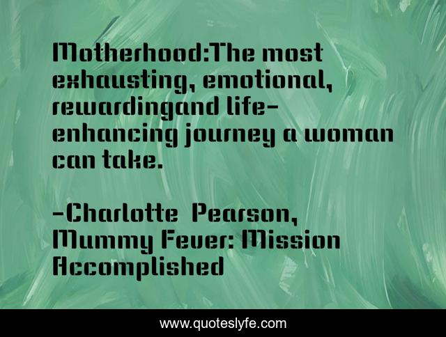 "Charlotte Pearson, Mummy Fever: Mission Accomplished Quotes." Quoteslyfe.com, 2025. Mon. 08 Dec. 2025. <https://www.quoteslyfe.com/quote/Motherhood-The-most-exhausting-emotional-rewardingand-life-100209>.