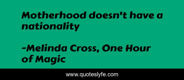 "Melinda Cross, One Hour of Magic Quotes." Quoteslyfe.com, 2025. Sat. 06 Dec. 2025. <https://www.quoteslyfe.com/quote/Motherhood-doesn-t-have-a-nationality-178709>.