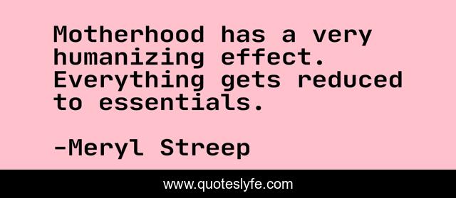 This page presents the quote "Motherhood has a very humanizing effect. Everything gets reduced to essentials.". Author of this quote is Meryl Streep. This quote is about motherhood, everything,.