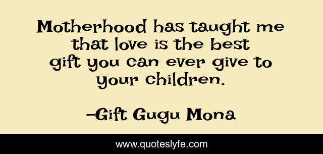 This page presents the quote "Motherhood has taught me that love is the best gift you can ever give to your children.". Author of this quote is Gift Gugu Mona. This quote is about love, best-gift, motherhood, taught, children, affection,.