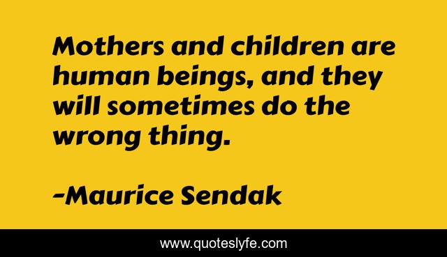 This page presents the quote "Mothers and children are human beings, and they will sometimes do the wrong thing.". Author of this quote is Maurice Sendak. This quote is about children, human, mothers,.