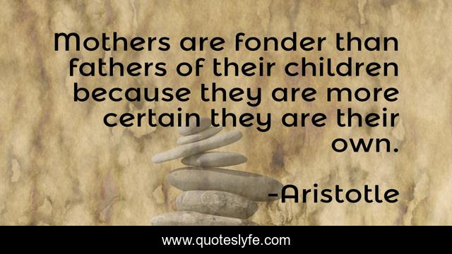 This page presents the quote "Mothers are fonder than fathers of their children because they are more certain they are their own.". Author of this quote is Aristotle. This quote is about children, mothers,.
