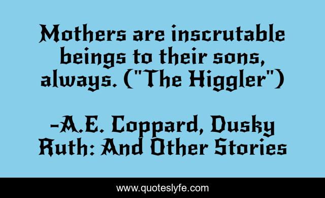 This page presents the quote "Mothers are inscrutable beings to their sons, always. ("The Higgler")". Author of this quote is A.E. Coppard, Dusky Ruth: And Other Stories. This quote is about love, family, mothers, son, sons, mother, affection,.