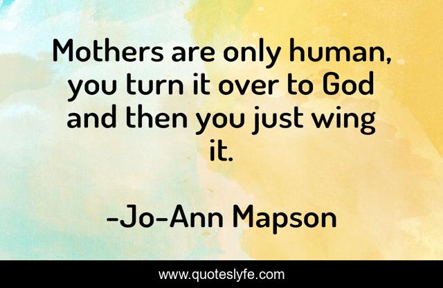 This page presents the quote "Mothers are only human, you turn it over to God and then you just wing it.". Author of this quote is Jo-Ann Mapson. This quote is about mothers, parenting-soloman-s-oak,.