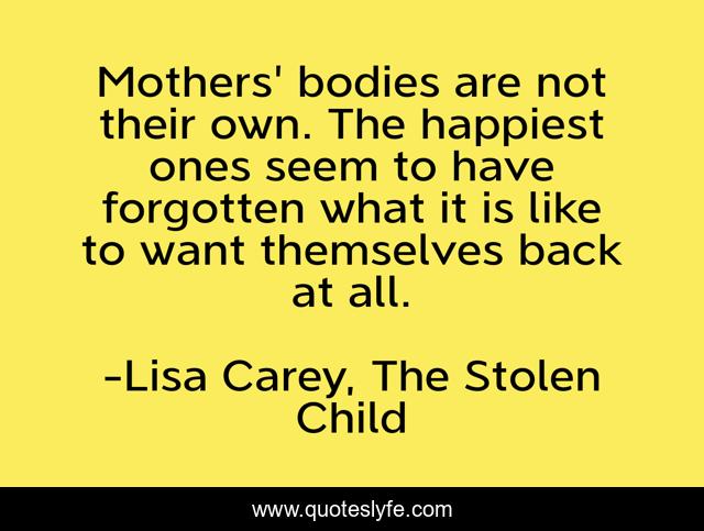 This page presents the quote "Mothers' bodies are not their own. The happiest ones seem to have forgotten what it is like to want themselves back at all.". Author of this quote is Lisa Carey, The Stolen Child. .