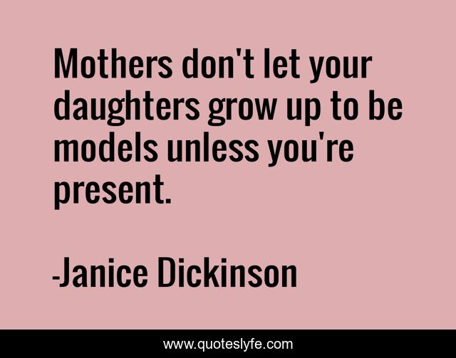 This page presents the quote "Mothers don't let your daughters grow up to be models unless you're present.". Author of this quote is Janice Dickinson. This quote is about grow up, grow,.