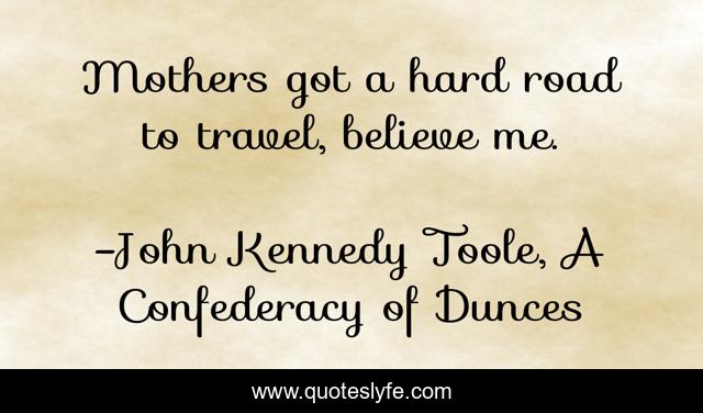 "John Kennedy Toole, A Confederacy of Dunces Quotes." Quoteslyfe.com, 2025. Tue. 09 Dec. 2025. <https://www.quoteslyfe.com/quote/Mothers-got-a-hard-road-to-travel-213332>.