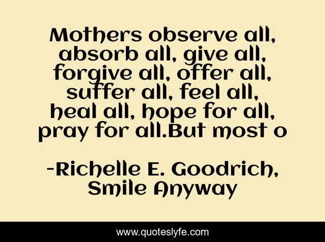 "Richelle E. Goodrich, Smile Anyway Quotes." Quoteslyfe.com, 2025. Sat. 06 Dec. 2025. <https://www.quoteslyfe.com/quote/Mothers-observe-all-absorb-all-give-all-189524>.