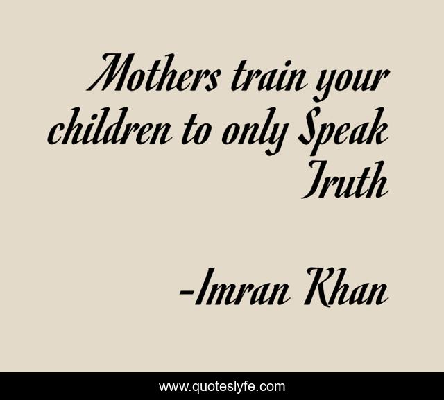This page presents the quote "Mothers train your children to only Speak Truth". Author of this quote is Imran Khan. This quote is about truth, mother,.