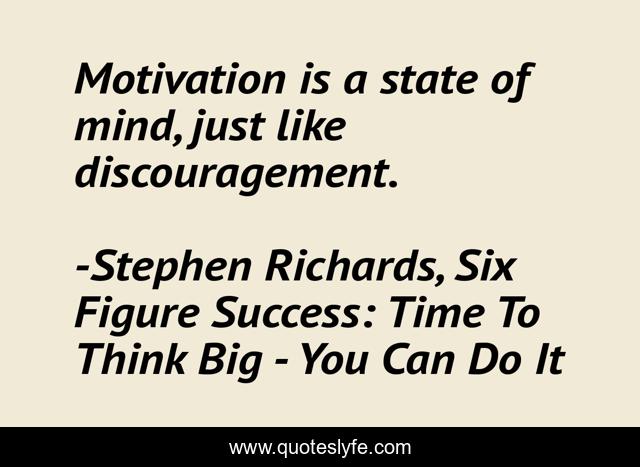 "Stephen Richards, Six Figure Success: Time To Think Big - You Can Do It Quotes." Quoteslyfe.com, 2025. Mon. 08 Dec. 2025. <https://www.quoteslyfe.com/quote/Motivation-is-a-state-of-mind-just-48120>.