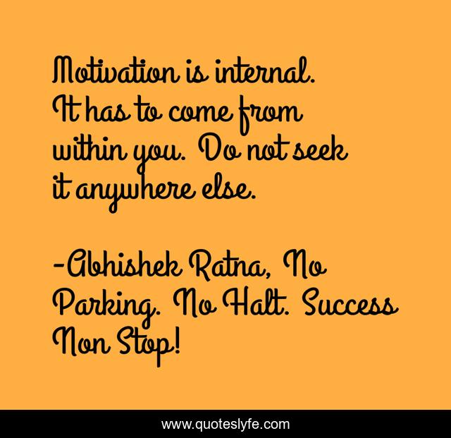 "Abhishek Ratna, No Parking. No Halt. Success Non Stop! Quotes." Quoteslyfe.com, 2025. Sat. 06 Dec. 2025. <https://www.quoteslyfe.com/quote/Motivation-is-internal-It-has-to-come-237626>.