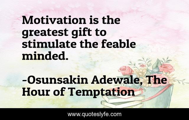 This page presents the quote "Motivation is the greatest gift to stimulate the feable minded.". Author of this quote is Osunsakin Adewale, The Hour of Temptation. This quote is about mind, hope,.