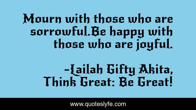 "Lailah Gifty Akita, Think Great: Be Great! Quotes." Quoteslyfe.com, 2025. Sun. 07 Dec. 2025. <https://www.quoteslyfe.com/quote/Mourn-with-those-who-are-sorrowful-Be-124560>.