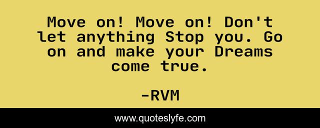 This page presents the quote "Move on! Move on! Don't let anything Stop you. Go on and make your Dreams come true.". Author of this quote is RVM. This quote is about motivation, inspiration,.