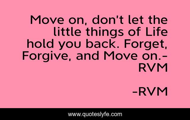 Move on, don’t let the little things of Life hold you back. Forget, Forgive, and Move on.- RVM
