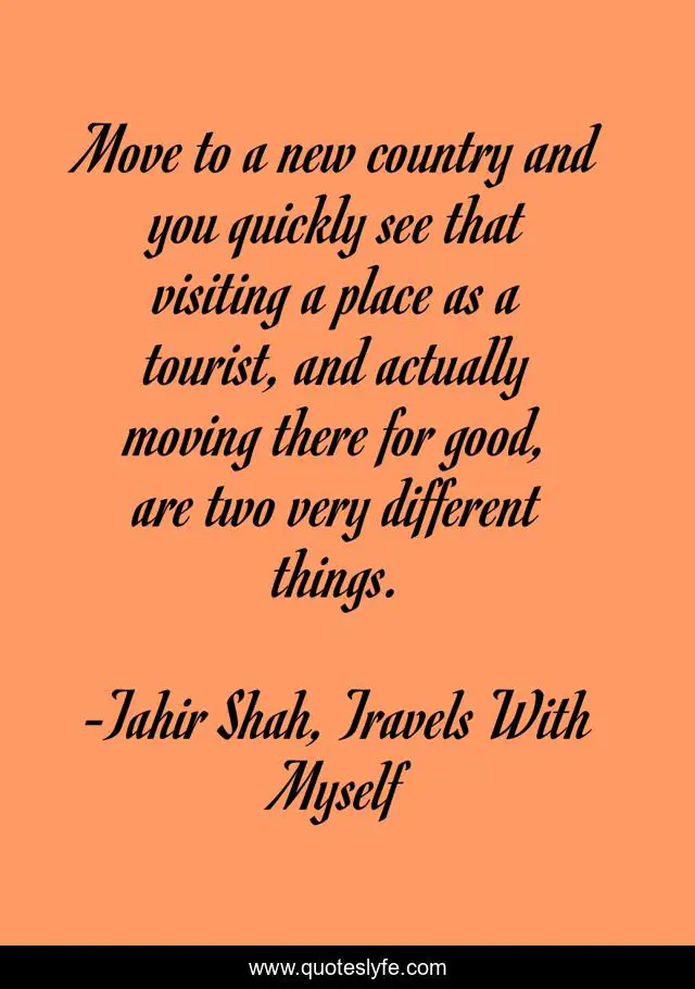 This page presents the quote "Move to a new country and you quickly see that visiting a place as a tourist, and actually moving there for good, are two very different things.". Author of this quote is Tahir Shah, Travels With Myself. This quote is about travel, moving, tourist,.