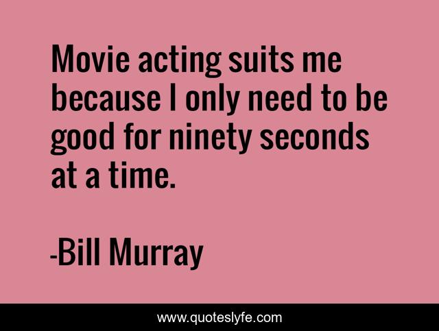 This page presents the quote "Movie acting suits me because I only need to be good for ninety seconds at a time.". Author of this quote is Bill Murray. This quote is about me, acting, good,.