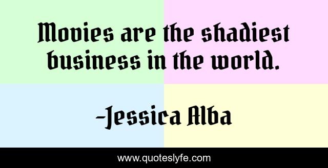 This page presents the quote "Movies are the shadiest business in the world.". Author of this quote is Jessica Alba. This quote is about world, movies,.