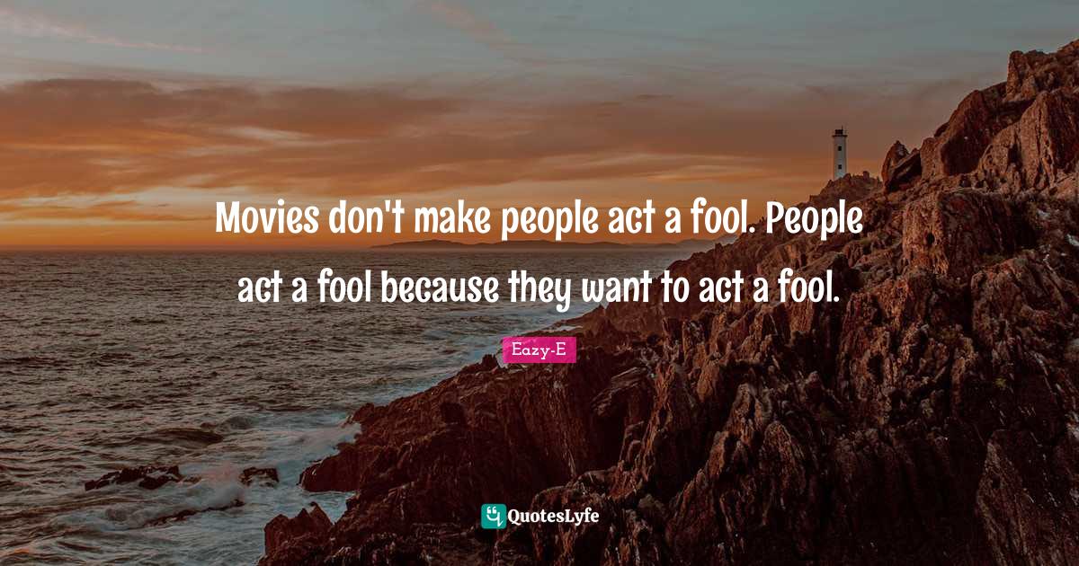 This page presents the quote "Movies don't make people act a fool. People act a fool because they want to act a fool.". Author of this quote is Eazy-E. This quote is about fool, people,.