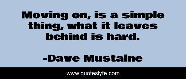 This page presents the quote "Moving on, is a simple thing, what it leaves behind is hard.". Author of this quote is Dave Mustaine. This quote is about simple, behind, moving,.