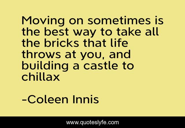 This page presents the quote "Moving on sometimes is the best way to take all the bricks that life throws at you, and building a castle to chillax". Author of this quote is Coleen Innis. This quote is about confidence, positive, motivational, optimistic, inspirational, enthusiasm, coleen-innis,.