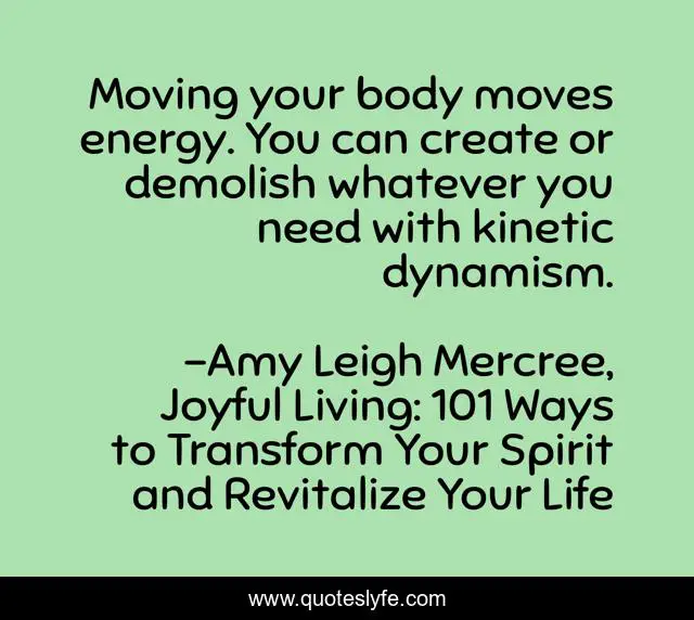 "Amy Leigh Mercree, Joyful Living: 101 Ways to Transform Your Spirit and Revitalize Your Life Quotes." Quoteslyfe.com, 2025. Tue. 09 Dec. 2025. <https://www.quoteslyfe.com/quote/Moving-your-body-moves-energy-You-can-14996>.