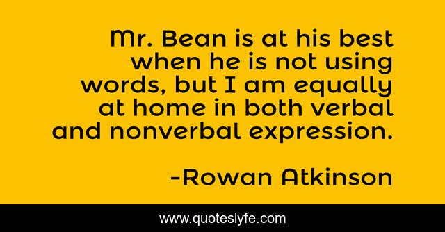 This page presents the quote "Mr. Bean is at his best when he is not using words, but I am equally at home in both verbal and nonverbal expression.". Author of this quote is Rowan Atkinson. This quote is about best, words,.