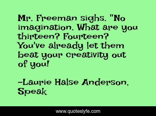 This page presents the quote "Mr. Freeman sighs. "No imagination. What are you thirteen? Fourteen? You've already let them beat your creativity out of you!". Author of this quote is Laurie Halse Anderson, Speak. .