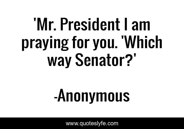 This page presents the quote "'Mr. President I am praying for you. 'Which way Senator?'". Author of this quote is Anonymous. .