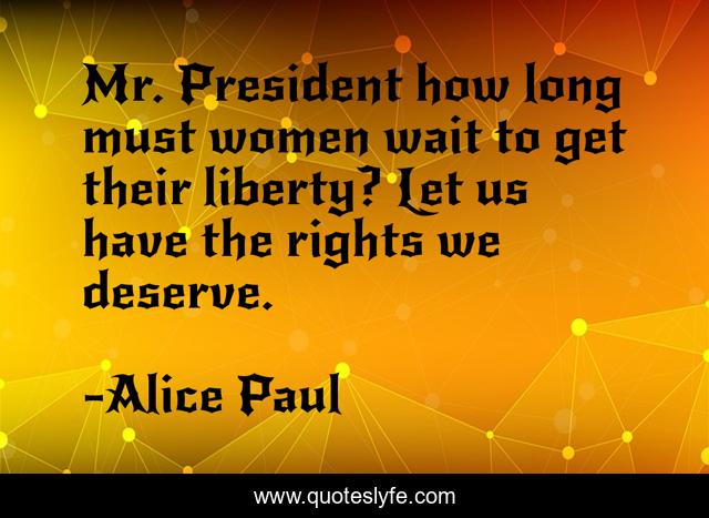 "Alice Paul Quotes." Quoteslyfe.com, 2025. Tue. 09 Dec. 2025. <https://www.quoteslyfe.com/quote/Mr-President-how-long-must-women-wait-302340>.