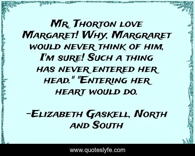 "Elizabeth Gaskell, North and South Quotes." Quoteslyfe.com, 2025. Sun. 07 Dec. 2025. <https://www.quoteslyfe.com/quote/Mr-Thorton-love-Margaret-Why-Margraret-would-171974>.