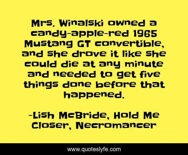 "Lish McBride, Hold Me Closer, Necromancer Quotes." Quoteslyfe.com, 2025. Tue. 09 Dec. 2025. <https://www.quoteslyfe.com/quote/Mrs-Winalski-owned-a-candy-apple-red-250081>.