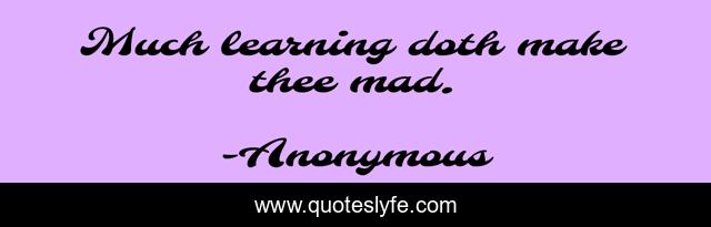 This page presents the quote "Much learning doth make thee mad.". Author of this quote is Anonymous. .