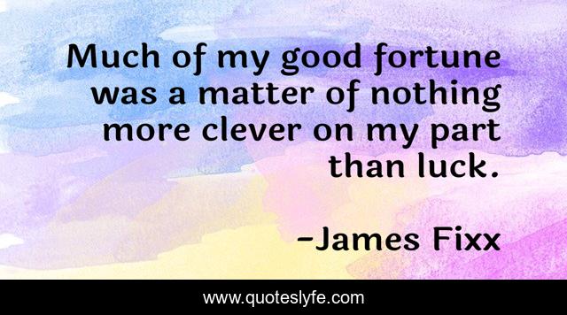 This page presents the quote "Much of my good fortune was a matter of nothing more clever on my part than luck.". Author of this quote is James Fixx. .