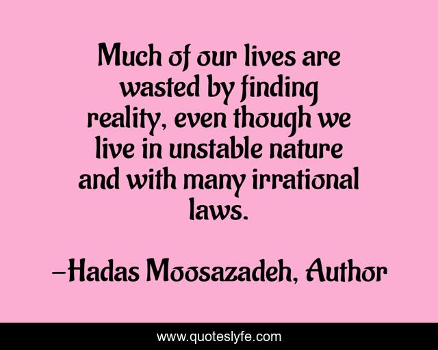 This page presents the quote "Much of our lives are wasted by finding reality, even though we live in unstable nature and with many irrational laws.". Author of this quote is Hadas Moosazadeh, Author. .