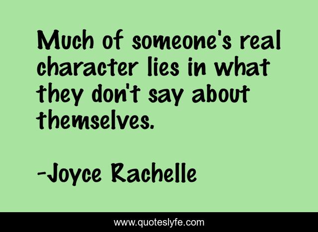 "Joyce Rachelle Quotes." Quoteslyfe.com, 2025. Sun. 07 Dec. 2025. <https://www.quoteslyfe.com/quote/Much-of-someone-s-real-character-lies-147539>.