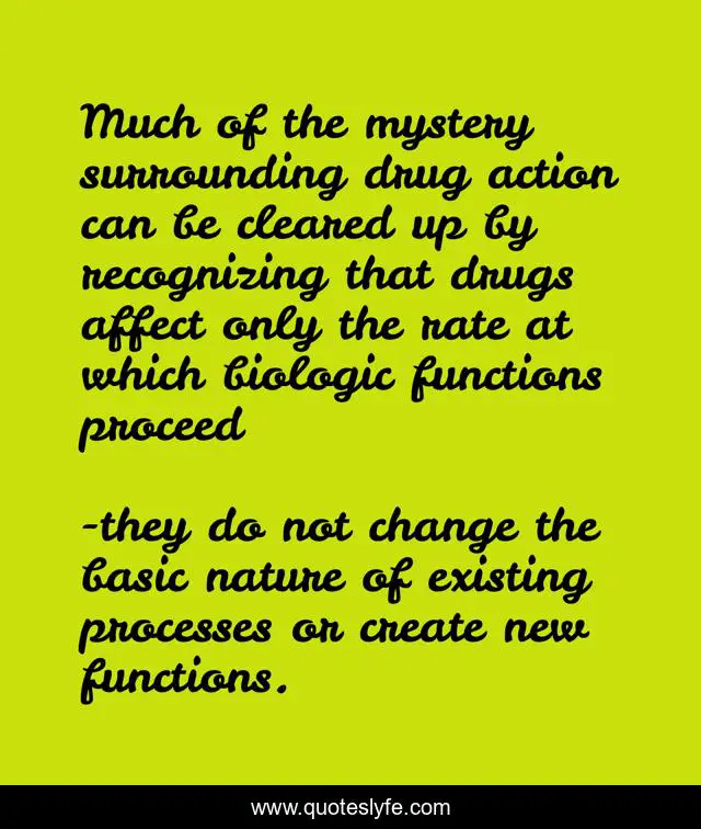 This page presents the quote "Much of the mystery surrounding drug action can be cleared up by recognizing that drugs affect only the rate at which biologic functions proceed". Author of this quote is they do not change the basic nature of existing processes or create new functions.. .