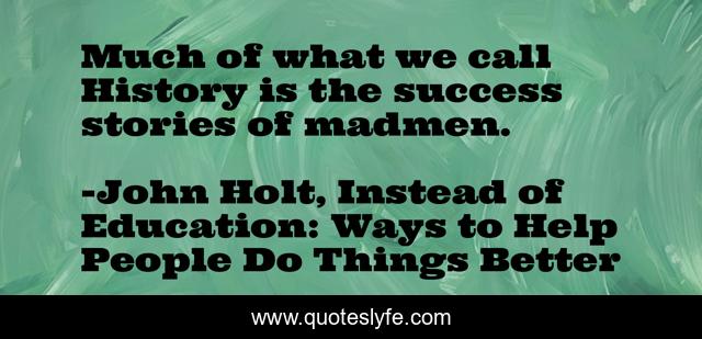 This page presents the quote "Much of what we call History is the success stories of madmen.". Author of this quote is John Holt, Instead of Education: Ways to Help People Do Things Better. This quote is about education, history,.